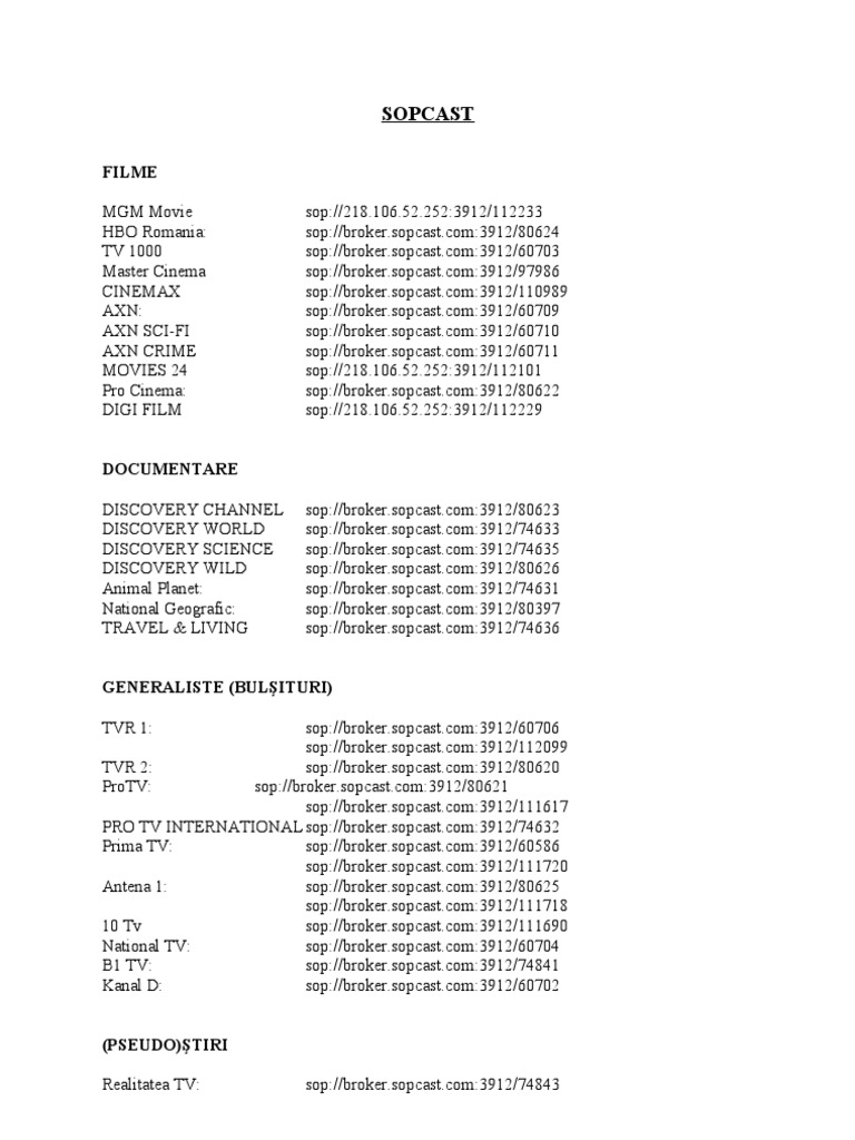 Adrese sopcast romania. 03 02 articol classification system for partial edentulism 1 speaking and listening instructional philosophy and teaching suggestions. Un mod simplu şi facil de a vedea de oriunde pe internet programele tv româneşti. Sopcast este o aplicatie gratuita cu ajutorul careia putem urmari toate posturile tv romanesti online. Lista cu programe romanesti ce pot fi urmarite online gratuit pe aplicatia sopcast pe laptop calculator sau telefon android.
