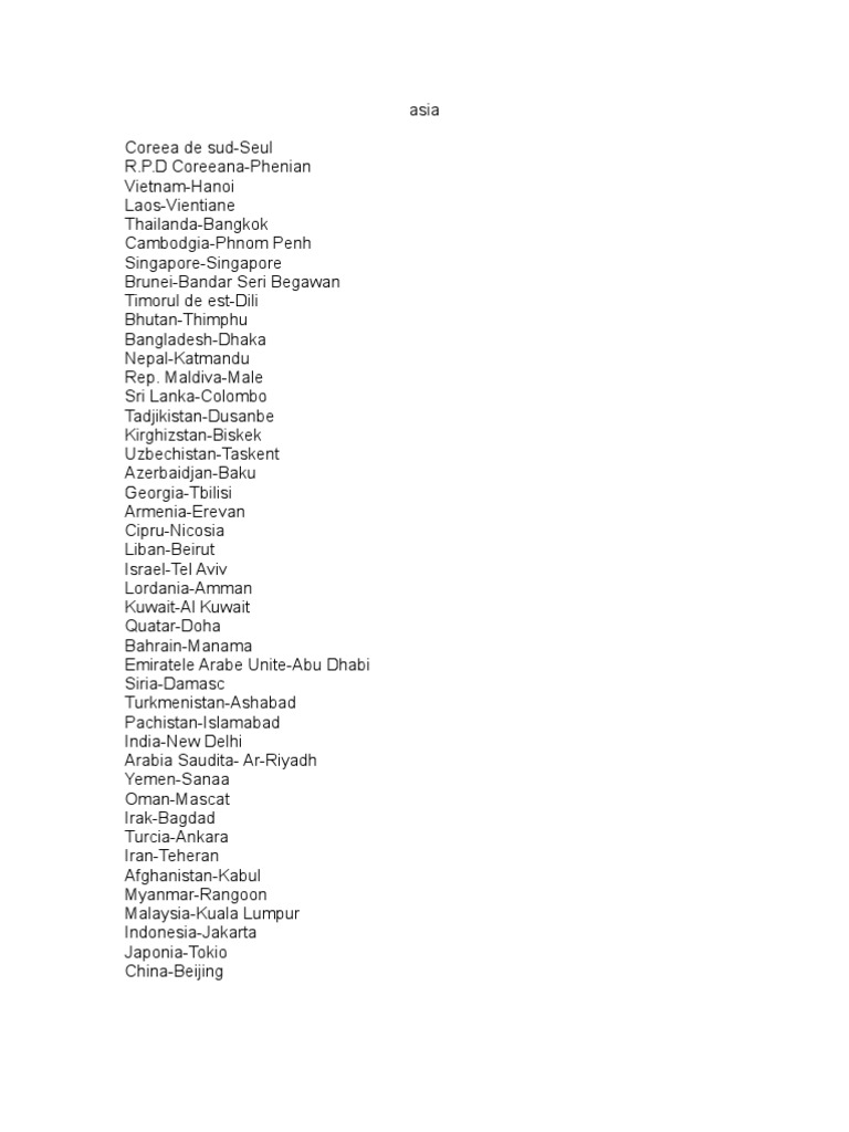 Albania tirana andora andora la vella armenia erevan austria viena azerbaijan baku belarus minsk belgia brussles bosnia hertegovina sarajevo bulgaria sofia croatia zagreb cipru nicosia cehia praga danemarca copenhaga estonia talin finlanda helsinki. Cu putin efort si utilizand o harta in care sa apara tarile si capitalele europei in maxim 2 ore poti invata capitalele europei. Aceasta este lista capitalelor asiatice în ordine alfabetică. Include toate capitalele țărilor independente regiunilor disputate și teritoriilor dependente.