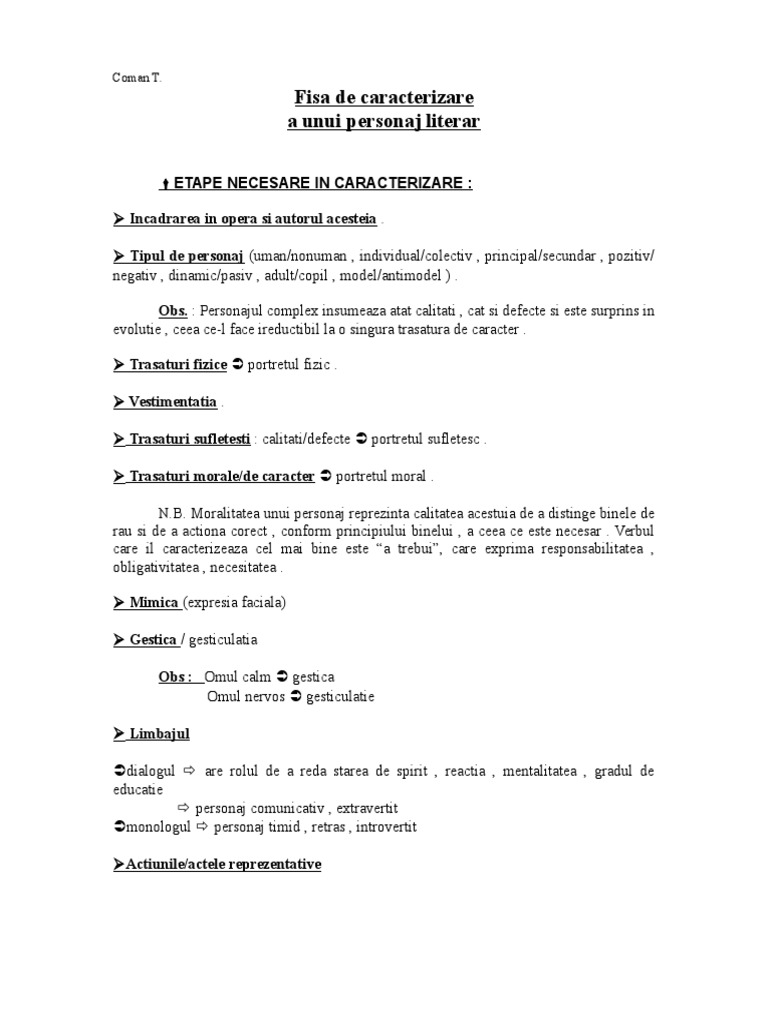 Caracterizare De Personaj