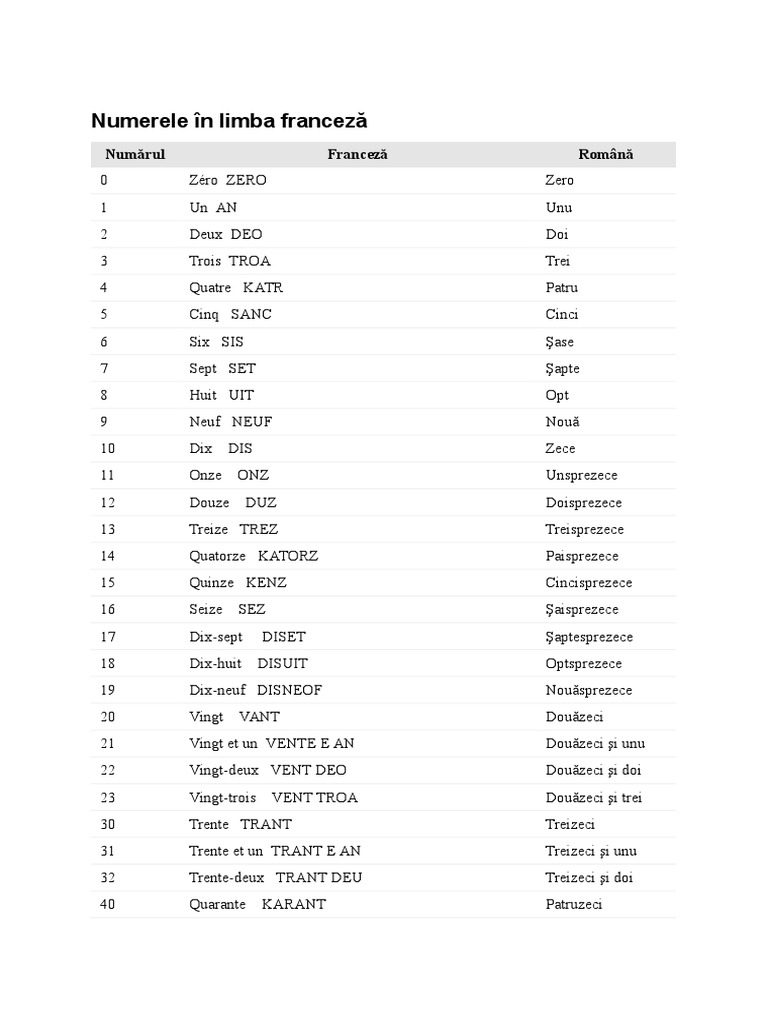 Am lansat site ul 4edu ro. Reverso context oferă traducere în context din română în franceză pentru cifrele cu exemple. 10 motive să înveţi franceza alfabetul limba franceză pentru afaceri verbele în limba franceză 8 sfaturi pentru învăţarea limbii franceze proverbe în limba franceză jocuri educaţionale mass media franceză. Urmariti canalul de youtube cursurio pentru a vizualiza mai multe filmulete educationale numerele in franceza de la 1 la 10 cifra zero este scrisa la fel ca si in limba romana insa are un accent acut pe litera e si se pronunta usor diferit celelalte cifre pana la 10 se scriu si se pronunta total diferit.