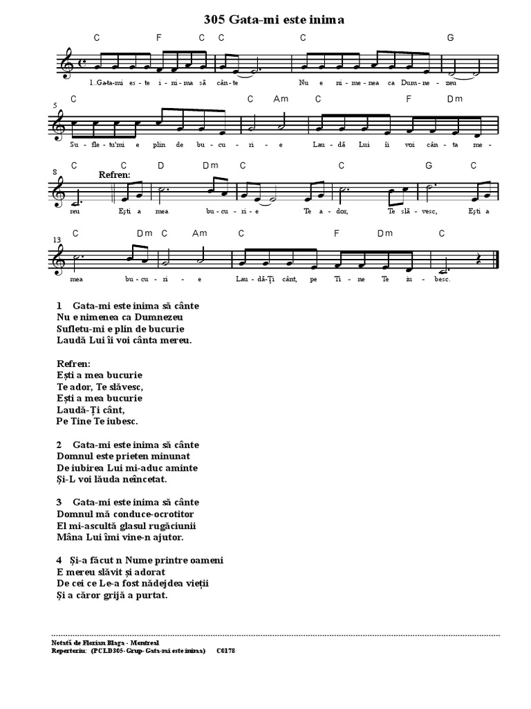 Gata mi este inima. Gata mi este inima să cânte domnul este prieten minunat de iubirea lui mi aduc aminte şi l voi. This site uses cookies. Gata mi este inima să ţi cânte un psalm un cântec nou spre slava ta isuse spre slava ta şi a tatălui din cer înalţ cântarea mea de laudă. în zori de zi îţi cânt cu mulţumire căci sufletul mi e plin mi e plin de a ta.