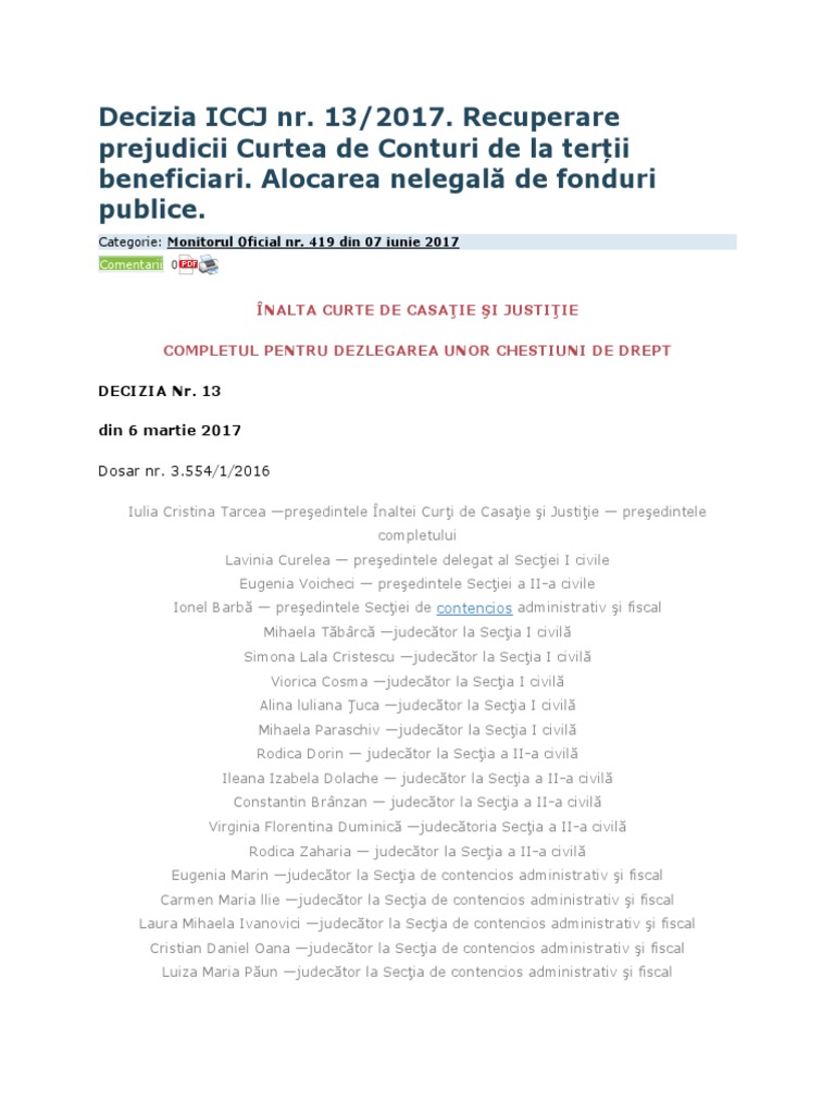 8 din 15 martie 2017 completul pentru dezlegarea unor chestiuni de drept în materie penală 25. Decizii pronunțate de acest complet pe ani. Decizie nr 8 15 03 2017 î c c j decizia nr. 3 din legea contenciosului administrativ.