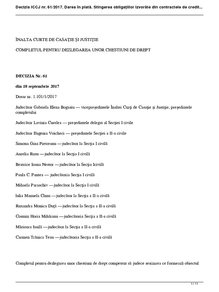 Iccj decizii 2017. îccj completul de 9. Decizia iccj ril nr. Completul pentru soluţionarea recursurilor în interesul legii. Completul pentru dezlegarea unor chestiuni de drept în materie penală.