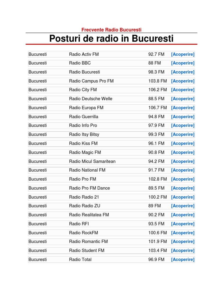 Cu player ul nostru de radio pentru internet poți asculta orice post de radio online din întreaga lume. Frecvente fm si am in judetul galati. 87 m turnul brd în piața victoriei este locația de emițătoare radio de vibe fm 92 1 mhz virgin radio 100 2 mhz fostul radio 21 europa fm 106 7 mhz și radio smart fm 107 3 mhz. Dream fm bacău 98 0 fm onești 92 2 fm focșani 89 4 fm.