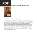 Acasarugăciunirugăciune care se citeşte în fiecare post. Rugaciune dupa sfarsitul lucrului. Rugaciune care se citeste in fiecare post. Dumnezeul nostru nădejdea tutu ror marginilor pământului și a celor ce sunt pe mare departe cel ce mai înainte ai întocmit prin legea ta cea veche și nouă aceste zile de post la care ne ai învrednicit să ajungem acum pe tine te lăudăm și ție ne rugăm.