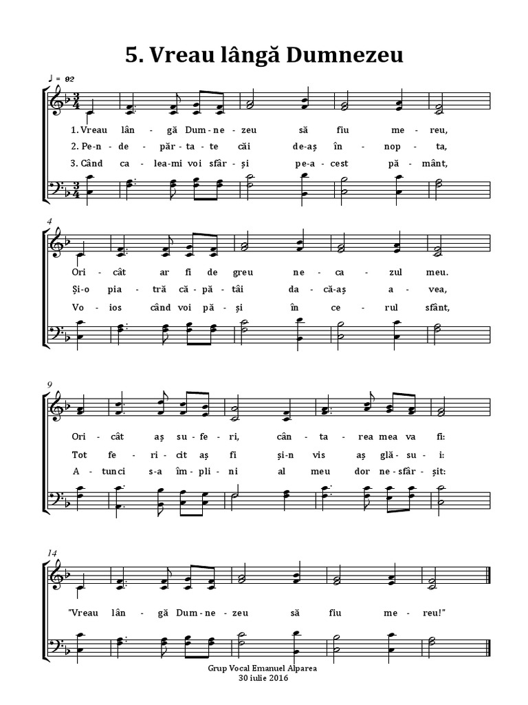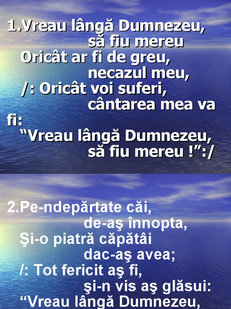 Când calea mi voi sfârşi ici pe pământ şi n veşnicii voi fi cu domnul sfânt. 1 vreau lângă dumnezeu să fiu mereu d bm a d oricât ar fi de greu necazul meu. Strofa 1 vreau lângă dumnezeu să fiu mereu oricât ar fi de greu necazul meu oricât voi suferi cântarea mea va fi. Vreau lângă dumnezeu să fiu mereu.